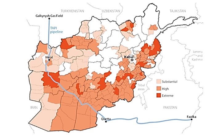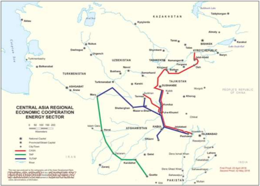 The CASA-1000 high-voltage transmission line from Central Asia is the first major interregional power project to facilitate electricity transmission between Afghanistan and Pakistan. For the time being, the extension of this line to other South Asian countries, such as India, is not contemplated.